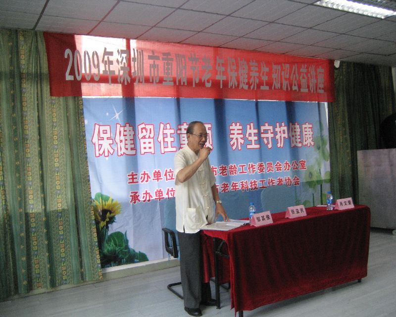 接到深圳市老龄工作委员会办公通知后,我们立即组成养生保健组,通过电话询问及实地走访的形式了解各养老机构及社区的老年人数、年龄、文化层次、活动场地及可容纳人数,同时联系北京及深圳两地知名保健专家参加讲座。携手专家一起走进6大养老院(罗湖区社会福利中心老人院、盐田区福利中心老人院、市社会福利中心老人院、宝安西乡敬老院、深圳市任达爱心护理院、军休二所)及三大社区(福山社区、莲花北社区、龙联社区)向老人讲解保健养生知识。活动于10月27日全部结束。