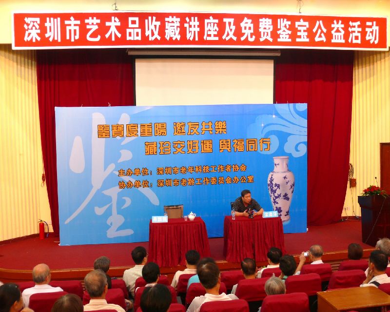 为庆祝建国60周年及重阳节,及更好地贯彻《文化产业振兴规划》:把文化产业作为市场经济条件下繁荣发展社会主义文化的重要载体,作为满足人民群众多样化、多层次、多方面精神文化需求的重要途径,深圳市老年科技工作者协会在深圳市老龄工作委员会办公室的支持下于10月26日在深圳市科学馆隆重举办了“深圳市艺术品收藏讲座及免费鉴宝公益活动”。