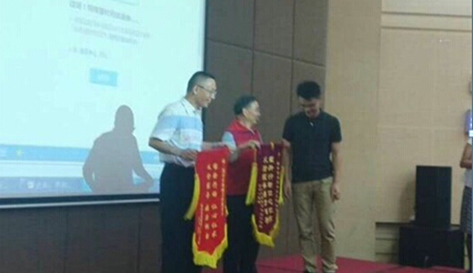 | 上图为康普斯公司洪新旺总经理向市老龄办和老年科协赠送感谢锦旗 |