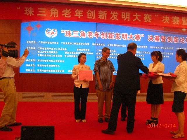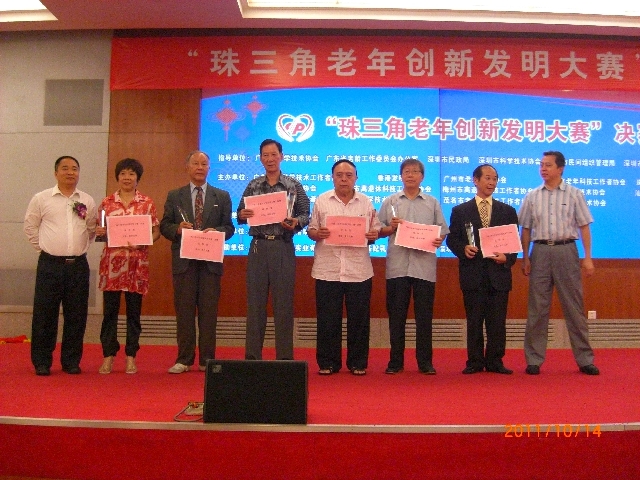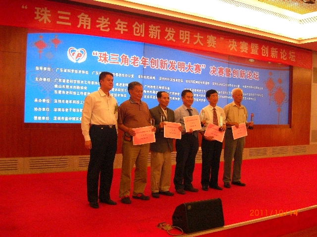 为充分发挥老年科技工作者的聪明才智,激励和带动更多的老年科技工作者投入到发明创新的科技重心工作中来,在粤港澳发展的进程中贡献老科技工作者的一份力量,在广东省科协、广东省老龄办、深圳市民政局、深圳市科协、深圳市民管局、深圳市老龄办、中国老龄事业发展基金会的支持指导下,广东省老科学技术工作者协会、香港发明协会、广州市老工程师协会、深圳市老年科技工作者协会、珠海市老科技工作者协会、汕头市老科技工作者协会、佛山市技术创新协会、韶关市离退休科技工作者协会、梅州市离退休科技工作者协会、惠州市科学技术协会、汕尾市科学技术协会、东莞市发明协会、东莞市老科技工作者协会、中山市科学技术协会、茂名市老科学技术工作者协会、云浮市科学技术协会----十六个科技社团携手主办,深圳市老年科技工作者协会承办,深圳市老干部活动中心协办了“珠三角老年创新发明大赛”:在14个粤港城市征集到39个参赛项目(每个城市限报五个项目),于2011年10月13日在市老干中心举行初赛,10月14日上午在市民中心多功能厅举行决赛。