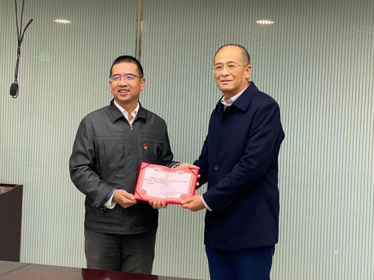 ▲深圳市对口援疆指挥部总指挥、喀什地区党委副书记杨春生同志向谭亦武教授(右)授聘书