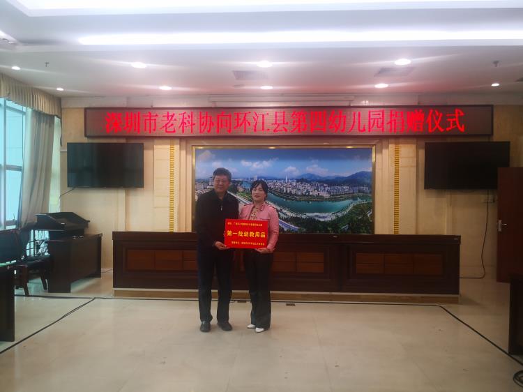 上图为朱鸣学会长参加环江四幼捐赠仪式 会员的全部爱心捐款,按照环江第四幼儿园的实际需求,协会购买了操场电子屏幕1条、充气毛毛虫4个、弹力彩虹绳8根、非洲鼓40个、沙水池用具20套、安吉九宫格28件套1套、滚筒协力车4套、户外交通信号牌1套、桌面益智玩具(雪花片、乐高积木、益智齿轮、磁力玩具、搭建玩具等)12套、画架4开、户外爬行圈4个、舞台背景架2个、户外造型人体墙贴1套、轮胎架5组4个、幼儿篮球架1个、节庆日摆盘3套快递至幼儿园。33600元爱心捐款全部用完。 三、会员牵线联络,爱心单位为环江四幼捐赠童书2454册 在协会朱鸣学会长的热心联络、沟通下,深圳力合微电子有限公司捐赠全新儿童书籍1038册,八成新儿童书籍116册,合计1154册。 经协会理事和建华的热心牵线搭桥,罗湖区布心小学组织捐赠了八成新儿童书籍1300册。 2020年深圳援助广西“银龄行动”自6月15日以来,共派出两批共78位医疗、教育、农技老专家前往广西百色、河池两市下辖都安、田林、田东、西林、巴马、凤山、东兰、罗城等县的医院、学校和职能局开展对口帮扶工作。此次爱心捐赠,不仅为2020年深圳援助广西“银龄行动”支教工作增了光、添了彩,也表达了深圳老年科技工作者积极助力扶贫攻坚战和广西教育事业的诚挚心愿,充分展现了深圳老年知识分子群体无私、奉献、大爱的高尚情怀。