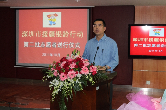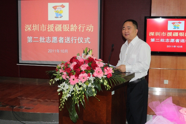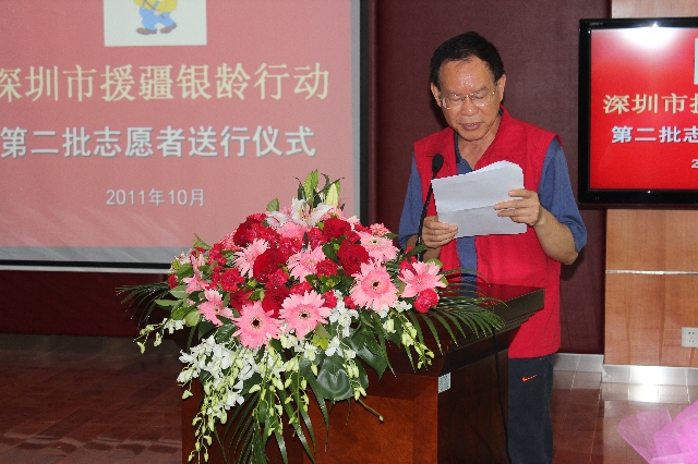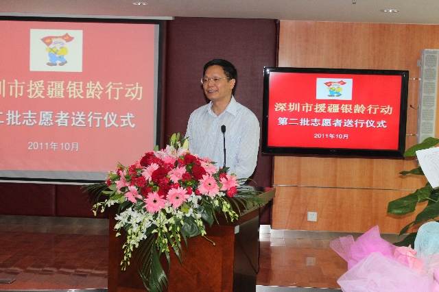 | 上图为深圳市老龄工作委员会办公室主任凌冲主持欢送仪式 |