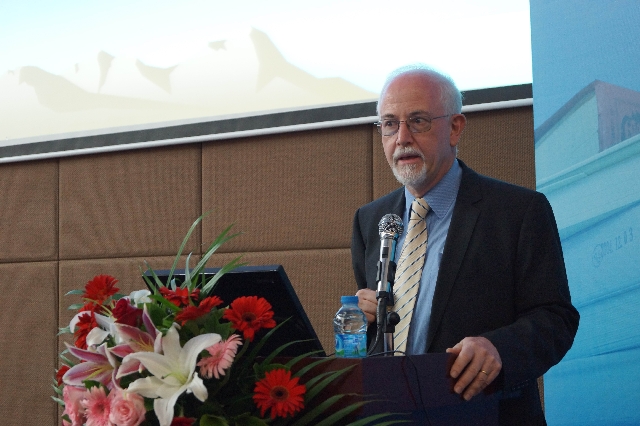 上图为香港发明协会荣誉会长、原香港知识产权署署长谢肃方先生在做报告
