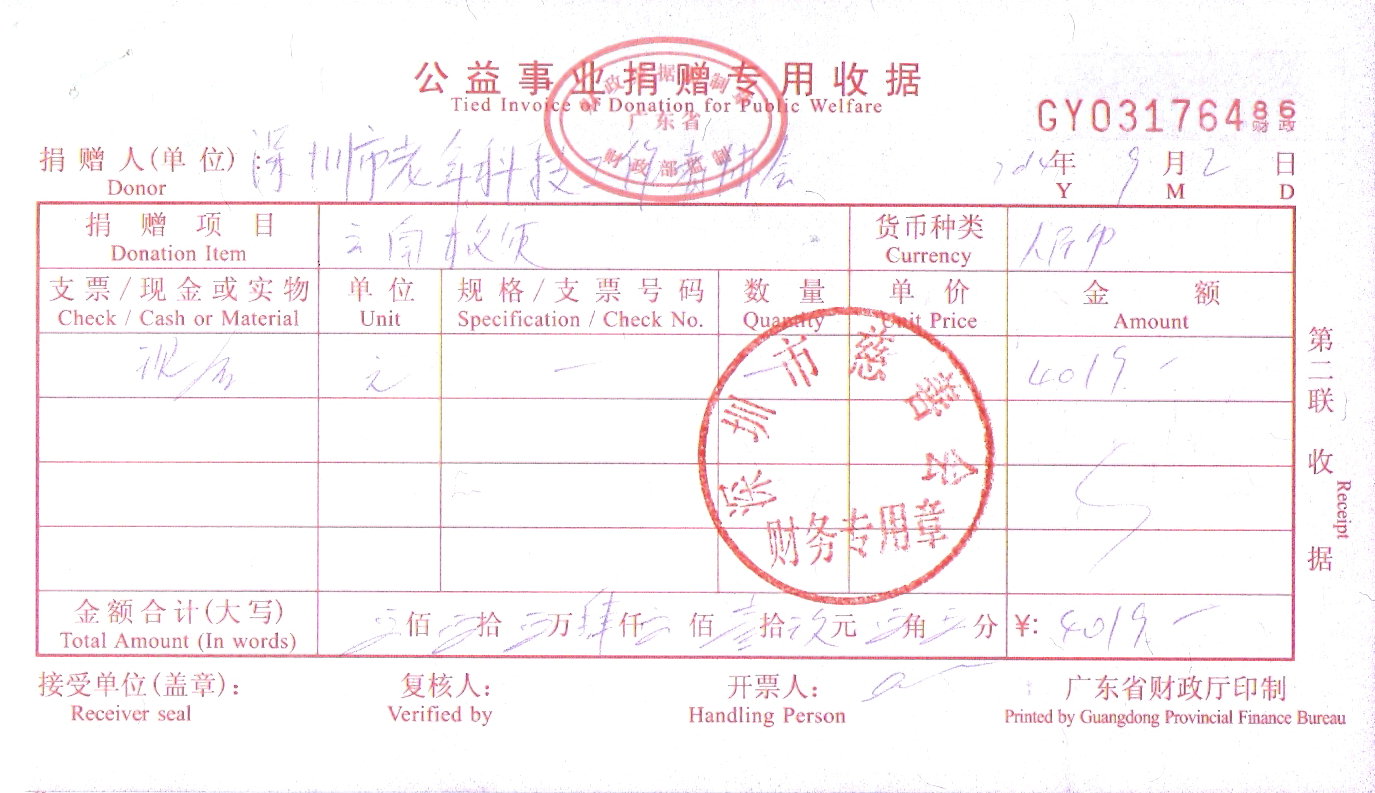 | 协会秘书处已于2014年9月2日下午将全部捐款交到市慈善会,市慈善会开具的“公益事业捐赠专用收据-云南救灾”扫描如下: |