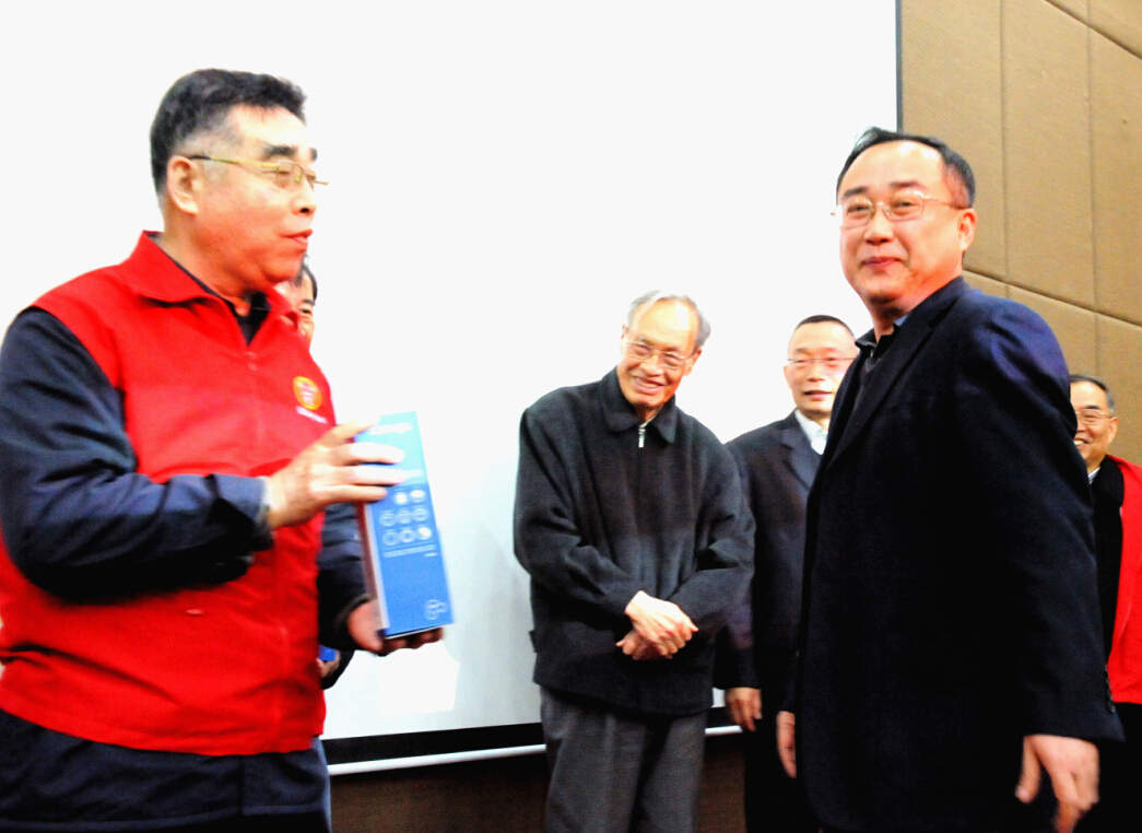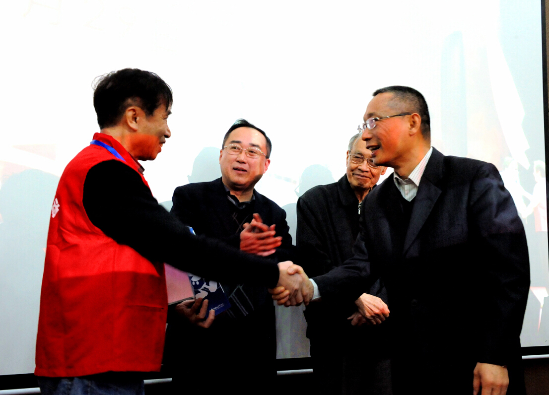 | 上图为市老龄办高金德主任为科技项目组志愿者代表姚文良颁发纪念品 |