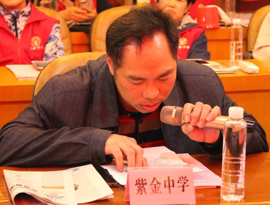| 上图为紫金中学郭小川副校长在反馈支教工作情况 |
